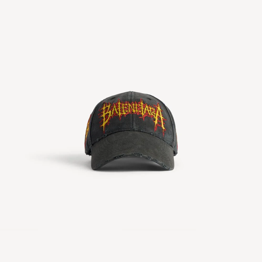 Balenciaga Sacre Cœur Cap in faded black cotton drill PRODUCT DETAILS • Cotton drill • Worn-out details • Classic baseball cap shape • Ventilation eyelets embroidered on top • Adjustable hook and loop tab at the back • Balenciaga Sacre Cœur artwork embroidered on the front, sides and back • Made in Italy Main material: 100% cotton