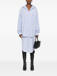 BB Classic Layered Shirt Dress in light blue and white striped cotton poplin PRODUCT DETAILS • Striped cotton poplin • Large fit • Paneled construction • Large fit • Spread collar • 9 button front • 1 patch pocket at chest • Long sleeves • 2 slash pockets • Buttoned cuffs • Rounded hem • Below-the-knee length • BB classic logo embroidered at chest • Made in Italy • Dry cleaning Material: 100% cotton
