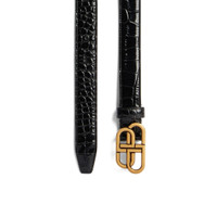 BB Thin Belt in black crocodile embossed calfskin, matte black hardware PRODUCT DETAILS • Dimensions : Width 1,1 inch • Smooth vegetable calfskin • Thin belt, “denim belt” • Matte black BB logo hardware on the front • 5 notches on the belt • Tone-on-tone leather loop • Made in Italy • Wipe with a soft cloth Material: 100% calfskin