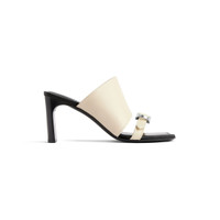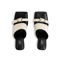 Bel Air 80mm Sandal in soya smooth calfskin PRODUCT DETAILS • Smooth calfskin • Sandal • Square toe • 80mm arch • Aged-silver buckle on the upper • Tone-on-tone covered heel • Black sole • Made in Italy Upper: calfskin - Sole: calfskin - Insole: goatskin