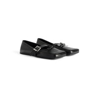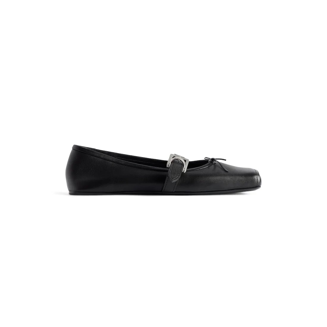 Bel Air Ballerina in black smooth calfskin PRODUCT DETAILS • Smooth calfskin • Ballerina • Square toe • Top knot • Adjustable strap • Balenciaga logo engraved on the buckle • Tone-on-tone insole • Black sole • Made in Italy Upper: calfskin - Sole: calfskin - Insole: lambskin