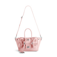 Bel Air Carry All Bag Mini in suede pink smooth calfskin, aged-silver hardware PRODUCT DETAILS • Dimensions: L9,2 x H6,7 x W3,1 inch • Smooth calfskin • Carry all • Two handles (drop: 4,3 inch) • Adjustable and removable strap (drop: 17,3 inch) • Shoulder, crossbody and hand carry • Balenciaga Paris logo debossed with foil at back • Removable cloche cles with two split rings • Aged-silver hardware • Side snaps • Turn lock closure • Logo engraved on the closure system • Wide front pocket • 1 main compartment • 2 inner zipped pockets • Nappa lambskin bonded lining • Made in Italy Material: calfskin