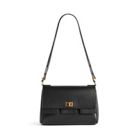 Bel Air Flap Bag XS in black smooth calfskin, aged-gold hardware PRODUCT DETAILS • Dimensions: L9,4 x H7,8 x W3,5 inch • Smooth calfskin • Flap Bag • Adjustable strap (drop:9 inch) • Crossbody, shoulder and hand carry • Aged-gold hardware • Turn lock closure • Logo engraved on the closure system • 1 main compartment • 1 inner card slot • Back zipped pocket • Nappa lambskin lining • Made in Italy Material: calfskin