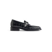 Bel Air Loafer in black crocodile embossed calfskin PRODUCT DETAILS • Crocodile embossed calfskin • Loafer • Square toe • Adjustable strap • Balenciaga logo engraved on the buckle • Tone-on-tone insole • Black sole • Made in Italy Upper: calfskin - Sole: calfskin - Insole: lambskin