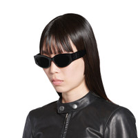 Bossy Round AF Sunglasses in black Eastman Acetate Renew, an acetate alternative partially made of bio-based and recycled content, with grey lenses PRODUCT DETAILS • Temple length: 4,9 inch • Bridge length: 0,7 inch • Eastman Acetate Renew (40% bio-based, 27% recycled) • Round shape • Adjusted fit • Hidden hinges within the matte black BB logo • Lasered logo on the right lens • Lens material: Nylon • Lens category: 3 • 100% UVA/UVB protection • Not suitable for optical conversion • Made in Italy • BB0324SK Material: acetate