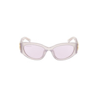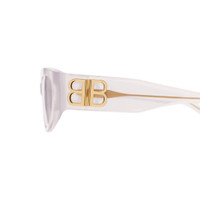 Bossy Round AF Sunglasses in transparent light pink Eastman Acetate Renew, an acetate alternative partially made of bio-based and recycled content, with light pink lenses PRODUCT DETAILS • Temple length: 4,9 inch • Bridge length: 0,7 inch • Eastman Acetate Renew (40% bio-based, 27% recycled) • Round shape • Adjusted fit • Hidden hinges within the shiny gold BB logo • Lasered logo on the right lens • Lens material: Bio-Nylon • Lens category: 1 • 100% UVA/UVB protection • Not suitable for optical conversion • Made in Italy • BB0324SK acetate