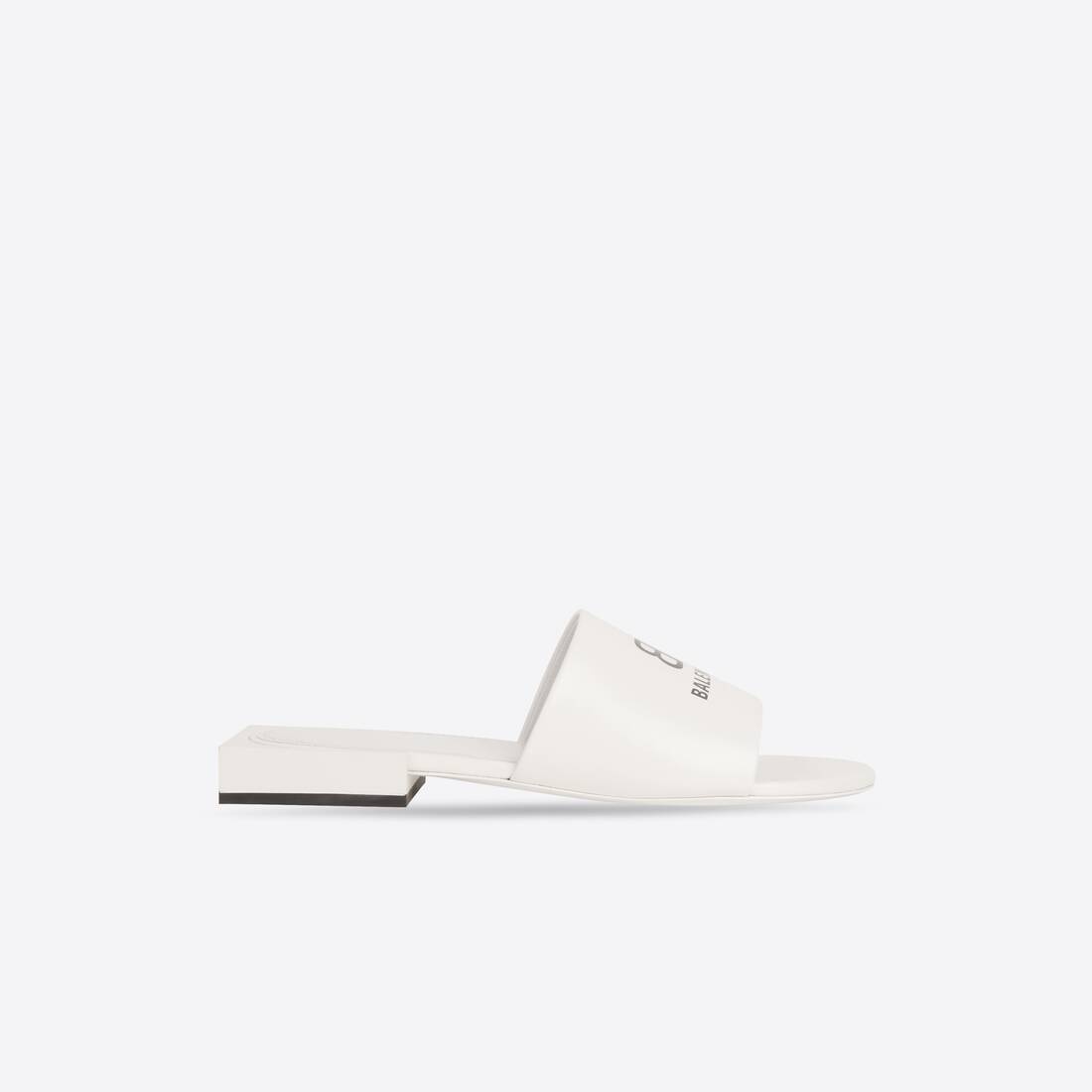 Box Sandal in white and black soft nappa sheepskin PRODUCT DETAILS • Soft nappa sheepskin • Sandal • Open rounded toe • Squared heel • BB Balenciaga logo printed on strap • Made in Italy • Wipe with a soft cloth Material: 100% sheepskin