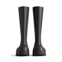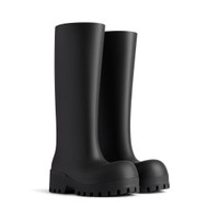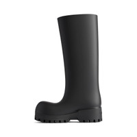 Bulldozer Rainboot in black rubber PRODUCT DETAILS • Rubber • Rainboot • Round toe • 60mm heel height • 30mm platform height • Thick toothed rubber outsole • Balenciaga logo at the back of the heel • Made in Italy • Wipe with a soft cloth Material: 100% TPU