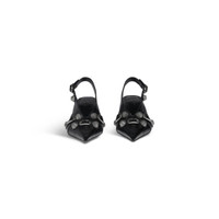 Cagole Slingback 70mm Pump in black Arena lambskin PRODUCT DETAILS • Arena lambskin • Pump • Pointed toe • Sling back • Adjustable strap • 70mm arch • Aged-silver studs and buckles on the upper • Embossed Balenciaga logo on sole part • Tone-on-tone covered heel • Made in Italy • Wipe with a soft cloth Material: 100% lambskin
