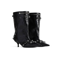Cagole Wide 50mm Bootie in black Arena lambskin PRODUCT DETAILS • Arena lambskin • Bootie • Pointed toe • 50mm arch • Wide upper • Aged-silver studs and buckles • Decorative zip at front • Tone-on-tone covered heel • Black sole • Made in Italy Upper: lambskin - Sole: calfskin - Insole: calfskin