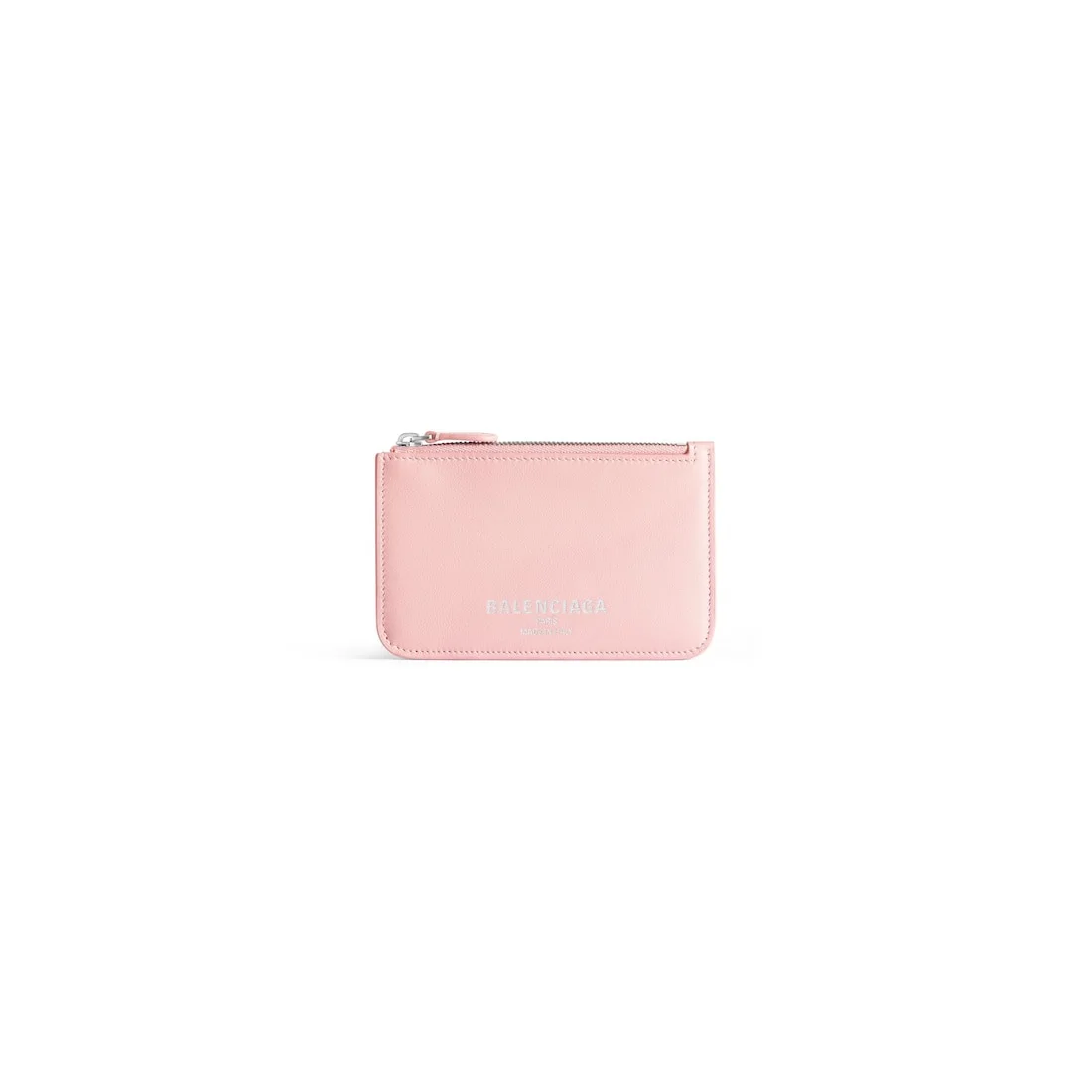 Cash 2.0 Long Coin And Card Holder in suede pink smooth calfskin PRODUCT DETAILS • Dimensions: L5,1 x H3,1 x W0,2 inch • Smooth calfskin • Long coin and card holder • Rounded edges • Balenciaga logo debossed at front • Semi-shiny palladium hardware • 1 zipped coin pouch • 1 receipt compartment • 5 card slots • Made in Italy Material: calfskin