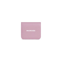 Cash Flap Coin And Card Holder in light pink and white grained calfskin PRODUCT DETAILS • Dimensions : L3,9 x H3,5 x W0,9 inch • Grained calfskin • Flap coin and card holder • Rounded edges • Balenciaga logo printed at front • Silver semi-shiny hardware • Snapped closure • 1 bill pocket • 4 card slots • 1 snapped coin purse • Made in Italy • Wipe with a soft cloth Material: 100% calfskin