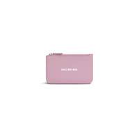 Cash Large Long Coin And Card Holder in light pink and white grained calfskin PRODUCT DETAILS • Dimensions: L2,9 x H5,5 x W0,4 inch • Grained calfskin • Large long coin and card holder • Rounded edges • Balenciaga logo printed at front • Semi-shiny palladium hardware • 1 zipped coin pouch • 1 receipt compartment • 5 card slots • Made in Italy • Wipe with a soft cloth Material: 100% calfskin