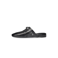 Cosy Cagole Mule in black Arena lambskin PRODUCT DETAILS • Arena lambskin • Mule • Semi-square toe • Open at back • Aged-gold studs and buckles on the upper • Embossed Balenciaga logo on sole part • Tone-on-tone sole and insole • Black outsole • Made in Italy • Wipe with a soft cloth Material: 100% lambskin