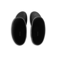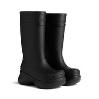 Crocs™ Boot in black rubber PRODUCT DETAILS • Rubber • Boot • Round toe • 20mm arch • Balenciaga logo debossed at front • Embossed size at back • Made in China • Crocs™ collaboration • Wipe with a soft cloth Material: 100% EVA