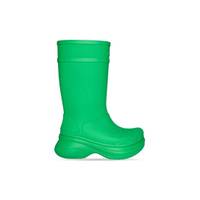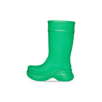Crocs™ Boot in green rubber PRODUCT DETAILS • Rubber • Boot • Round toe • 20mm arch • Balenciaga logo debossed at front • Embossed size at back • Made in China • Crocs™ collaboration • Wipe with a soft cloth Material: 100% EVA
