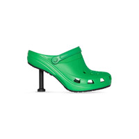 Crocs™ Madame 80mm Mule in green rubber is from the look 28 of the Balenciaga’s Spring 22, Clones Collection. Balenciaga Crocs 2.0, the second collaboration between the two brands, sees the classic clog made into a Mule. PRODUCT DETAILS • Rubber • Mule • Round toe • 80mm arch • Balenciaga logo debossed on strap • Embossed size at back • Tone-on-tone sole and insole • Black outsole • Made in China • Crocs™ collaboration • Wipe with a soft cloth Material: 100% EVA