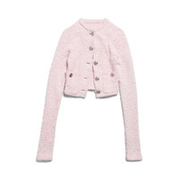 Cropped Cardigan in pink cotton tweed knit is from look 43 of Balenciaga Fall 24 collection. PRODUCT DETAILS • Cotton tweed knit • Round neck • Dropped shoulders • Long sleeves • 5 button front • 2 buttoned pockets • Cropped length • BB intersected logo embossed buttons • Made in Italy Material: 72% cotton, 26% polyamide, 2% viscose