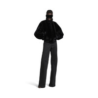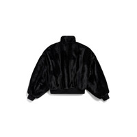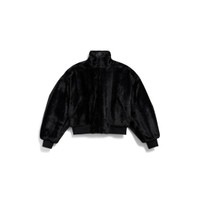 Cropped Jacket in black synthetic fabric for Women PRODUCT DETAILS • Recycled polyester, animal-free fur • High collar • Rounded sleeves • 2 front slash pockets • Zipped closure • Ribbed trims • Made in Italy Main material: 100% polyester