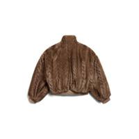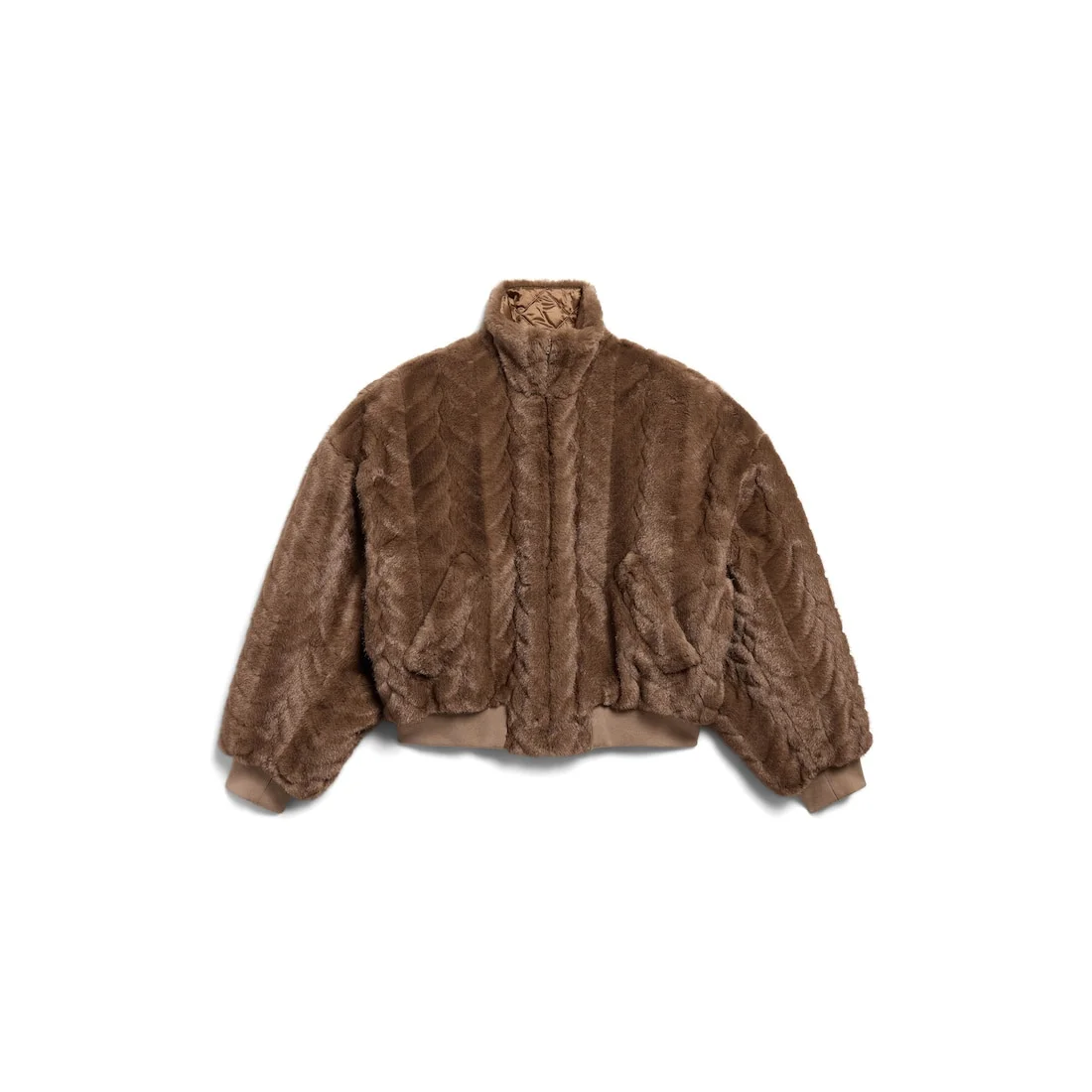 Cropped Jacket in brown synthetic fabric for Women PRODUCT DETAILS • Recycled polyester, animal-free fur • High collar • Rounded sleeves • 2 front slash pockets • Zipped closure • Ribbed trims • Made in Italy Main material: 100% polyester
