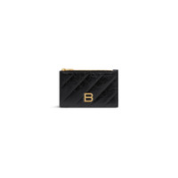 Crush Long Coin And Card Holder in black crushed calfskin and quilted PRODUCT DETAILS • Dimensions: L5,3 x H3,1 x W0,4 inch • Crushed calfskin and quilted • Long coin and card holder • Aged-gold B logo hardware • 1 zipped coin pouch • 1 receipt compartment • 5 card slots • Made in Italy • Wipe with a soft cloth Material: 100% calfskin