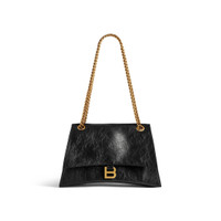 Crush Medium Chain Bag in black crushed calfskin, aged-gold hardware PRODUCT DETAILS • Dimensions: L12,2 x H7,8 x W2,7 inch • Crushed calfskin • Chain bag • Curvilinear base • Shoulder and crossbody chain strap (19,6 inch) • Aged-gold B logo hardware • Studded magnet closure • 3 compartments • 1 inner zipped pocket • 1 inner flat pocket • Nappa lambskin lining • Made in Italy • Wipe with a soft cloth Material: 100% calfskin