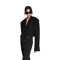 Women's Cut Off Single Breasted Jacket in Black