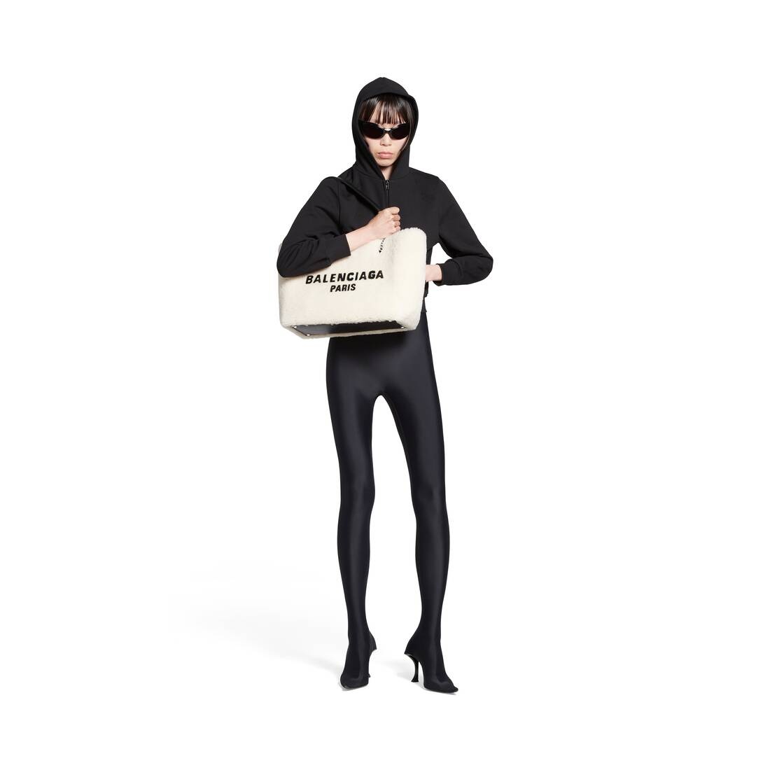 Duty Free Medium Tote Bag in light beige shearling, aged-silver hardware PRODUCT DETAILS • Dimensions: L13,8 x H10,6 x W5,5 inch • Handle drop: 9 inch • Shearling • Tote bag • Two handles • Balenciaga Paris logo at front • Aged-silver hardware • Open top • 1 inner zipped pocket • Cotton canvas lining • Made in Italy • Wipe with a soft cloth Material: 95% lambskin, 5% calfskin