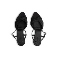 Dynastie 110mm Sandal in black satin PRODUCT DETAILS • Viscose and silk • Sandal • Open toe • 110mm arch • Adjustable ankle strap • Tone-on-tone covered heel • Black sole • Made in Italy Upper: viscose, silk - Sole: calfskin - Insole: goatskin