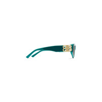 Dynasty D-Frame Sunglasses in green acetate with grey lenses PRODUCT DETAILS • Temple length : 5,3 inch • Bridge length : 0,7 inch • Full acetate frame and temples • D-frame shape • Standard fit • Hidden hinges within the shiny gold BB logo • Lasered logo on the right lens • Lens material : CR 39 • Lens category : 3 • 100% UVA/UVB protection • Suitable for optical conversion • Made in Italy • Wipe with a soft cloth • BB0095S Material: 100% acetate