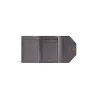 Envelope Compact Wallet With Card Holder in black smooth calfskin with contrasting dark grey lining PRODUCT DETAILS • Dimensions: L4,1 x H2,9 x W0,6 inch • Smooth calfskin • Compact wallet with card holder • Balenciaga Paris logo debossed at front • Aged-gold hardware • Snapped closure • 1 snapped bill pocket • 4 snapped card slots • 1 receipt compartment • 1 zipped coin pouch at back • 1 card slot at back • Made in Italy • Wipe with a soft cloth Material: 100% calfskin
