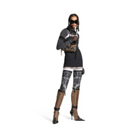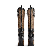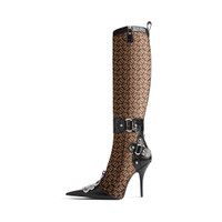 Essex 110mm Boot in beige and black crazy B jacquard and mix of crocodile and python embossed calfskin is from look 55 of Balenciaga Winter 24 Collection. PRODUCT DETAILS • Crazy B jacquard and mix of crocodile python embossed calfskin • Boot • Elongated pointed toe • 110mm arch • Knife heel • Silver Essex B logo in abs on the exterior • Strap around the ankle • Inner zipped closure • Tone-on-tone covered heel • Black sole • Made in Italy Upper: polyester, calfskin, cotton - Sole: calfskin - Insole: calfskin