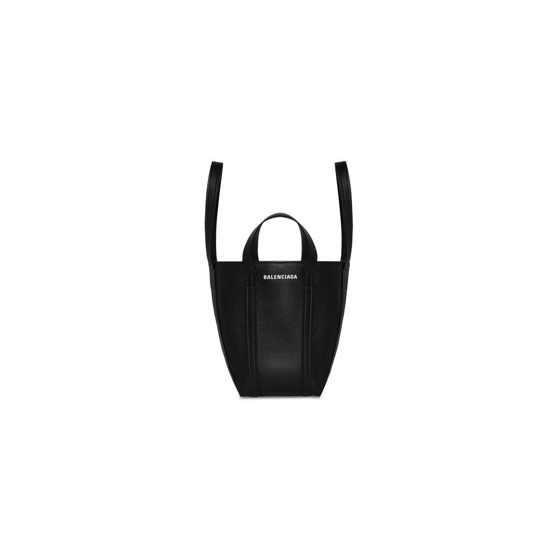 Everyday Small North-South Shoulder Tote Bag in black grained calfskin PRODUCT DETAILS • Dimensions : L9 x H10,6 x W5,9 inch • Grained calfskin • North-south shoulder tote bag • Two top handles • Two handles on sides • Adjustable and removable strap (19,6 inch) • Balenciaga logo printed at front • Semi-shiny palladium hardware • Snapped closure • 1 inner zipped pocket • Made in Italy • Wipe with a soft cloth Material: 100% calfskin