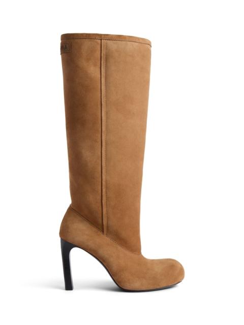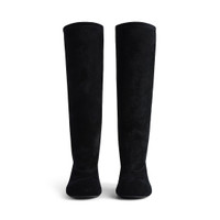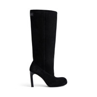 Fargo 80mm Boot in black split calfskin and synthetic material PRODUCT DETAILS • Split calfskin, wool and synthetic material • Boot • Round toe • 80mm arch • Metal BB logo on the back of the heel • Balenciaga logo debossed at back • Tone-on-tone sole • Made in Italy Upper: calfskin, wool, polyester, acrylic - Sole: calfskin - Insole: calfskin