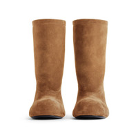 Fargo 100mm Bootie in brown split calfskin, wool and synthetic material PRODUCT DETAILS • Split calfskin, wool and synthetic material • Bootie • Extra round toe • 110mm arch • Metal BB logo on the back of the heel • Inner zipped closure • Black sole • Made in Italy Upper: calfskin, wool, polyester, acrylic - Sole: calfskin - Insole: calfskin