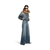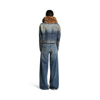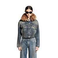 Faux-Fur Collar Denim Jacket in dark blue cotton denim PRODUCT DETAILS • Cotton denim • Synthetic fur collar • 4 button front • 2 chest pockets • 2 slash pockets • Adjustable buttoning at waist • Balenciaga engraved flex buttons • Made in Italy Main material: 100% cotton
