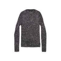 Fitted Sweater in black and silver sequined viscose knit PRODUCT DETAILS • Sequined viscose knit • Fitted • Semi-sheer fabric • Crewneck • Long sleeves • Ribbed trims • Made in Italy • Dry cleaning • Model is 179 cm / 5'10" and is wearing a size S Material: 55% polyamide, 45% metallized fiber