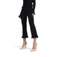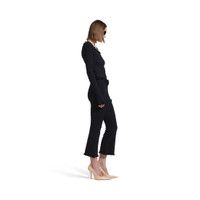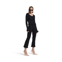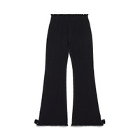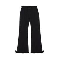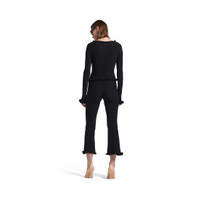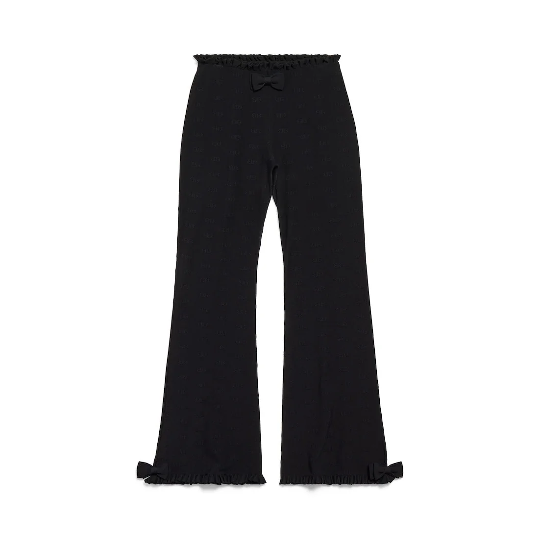 Flared Capri Pants in black viscose girly goth knit for Women are from look 53 of Balenciaga Winter 25 Collection. PRODUCT DETAILS • Girly goth knit • Allover BB jacquard logo • Elasticated waistband • Ruffles and bows at waist and bottom of legs • Cropped length • Made in Italy Main material: 83% viscose, 17% polyester