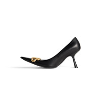 Flex BB 90mm Pump in black shiny soft calfskin PRODUCT DETAILS • Shiny soft calfskin • Pump • Pointed toe • 90mm arch • Flex heel • Hollowed out design at front • Gold BB logo at the upper • Tone-on-tone covered heel • Black sole • Made in Italy • Wipe with a soft cloth Material: 100% calfskin