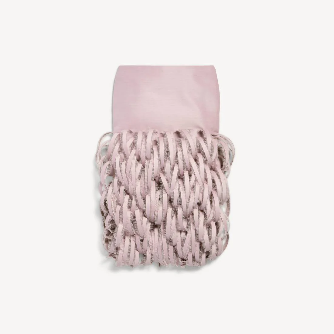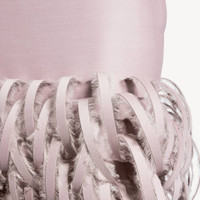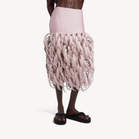Fluffy Feathers Pencil Skirt in dusty pink embroidered wool and silk is from look 13 of Balenciaga's Summer 26 Collection. PRODUCT DETAILS • Embroidered fabric • Fluffy feather-like details • 2 slash pockets • Darts at back waistline • Invisible zip closure on the right side • Back slit • Made in Italy Main material: 80% wiil, 20% silk