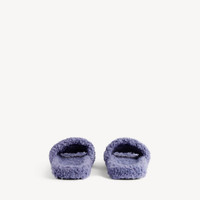 Furry Open Mule in hortensia synthetic material, white and red political campaign artwork embroideries with rhinestones PRODUCT DETAILS • Polyester • Open mule • Embroidered Balenciaga political campaign artwork with rhinestones • Tone-on-tone sole • Black outsole • Made in Italy Upper: polyester - Sole: TPU - Insole: polyester