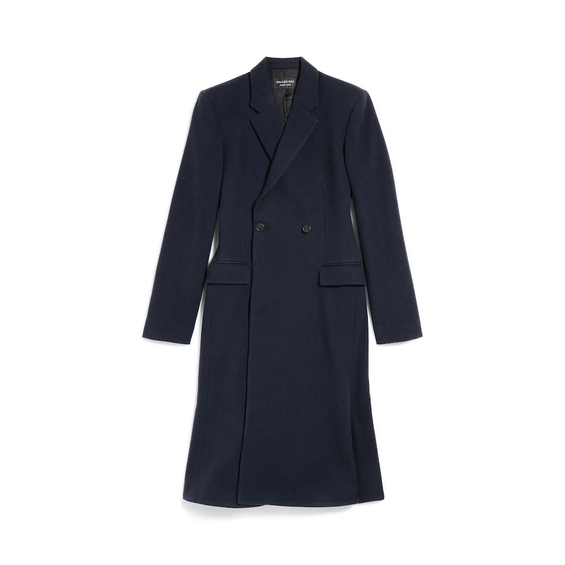 Godet Midi Coat in corporate navy brushed wool for Women is from look 8 of Balenciaga Winter 25 Collection. PRODUCT DETAILS • Brushed wool • Shoulder pads • Notch lapel • 2 button double-breasted front • Cinched waistline • 2 flap pockets at front • Godet shaped bottom, flared • Made in Italy Main material: 100% wool