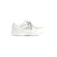 Hamptons Clean Sneaker in white cowskin and polyester PRODUCT DETAILS • Cowskin and polyester • Sneaker • Scribbled laces • Raw edge and visible stitching on the upper • Balenciaga logo debossed on the upper • Balenciaga logo embossed on the outsole • 3B sports icon artwork in rubber on each side • Loop sports icon logo on the tongue and at back heel • Written size debossed on the upper and at back of the heel • Made in China Upper: cowskin, polyester - Sole: rubber - Insole: foam