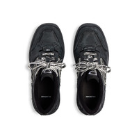 Hamptons Worn-Out Sneaker in black cowskin and polyester PRODUCT DETAILS • Cowskin and polyester • Sneaker • Worn-out effect • Scribbled laces • Raw edge and visible stitching on the upper • Balenciaga logo debossed on the upper • Balenciaga logo embossed on the outsole • 3B sports icon artwork in rubber on each side • Loop sports icon logo on the tongue and at back heel • Written size debossed on the upper and at back of the heel • Made in China Upper: cowskin, polyester - Sole: rubber - Insole: foam