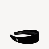 Holli Flat Headband in black velvet and shiny silver brass PRODUCT DETAILS • Velvet and brass • Flat headband • BB logo • Made in Italy • This item is nickel-free, lead-free, and hypoallergenic Material: viscose, cupro, acrylic, cotton, polyamide, brass