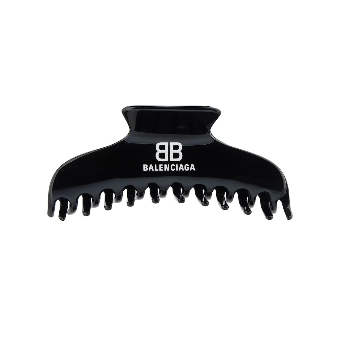 Holli Hair Grip in black and white acetate and stainless steel PRODUCT DETAILS • Dimensions: L5,12 x H1,97 x W1,74 inch • Acetate and stainless steel • Hair grip • BB Balenciaga logo printed • Made in France • This item is nickel-free, lead-free, and hypoallergenic Material: acetate, stainless steel