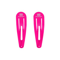 Holli XXL Clip Set of 2 in neon pink & shiny silver steel PRODUCT DETAILS • Dimensions: L3,9 x H0,3 x W0,1 inch • Steel • Clip • Silver BB Balenciaga logo • Set of 2 • Made in Italy • Wipe with a soft cloth Material: 100% brass