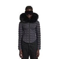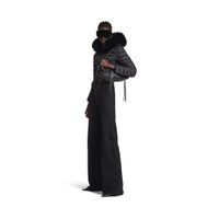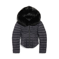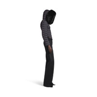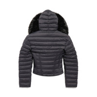 Hooded Corseted Puffer in black matte synthetic material for Women is from look 34 of Balenciaga Winter 25 Collection. PRODUCT DETAILS • Lightweight matte polyamide • Hood with polyester faux-fur detail • Reinforced, corseted front • Quilted construction • Rounded bottom • Double-ended zip fastening • Made in Italy Main material: 100% polyamide