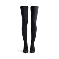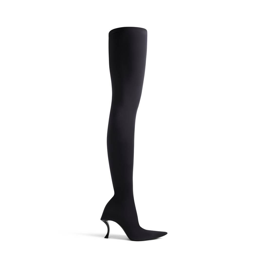 Hourglass 100mm Over-The-Knee Boot in black matte spandex is in several looks of Balenciaga’s Spring 24 Collection. PRODUCT DETAILS • Matte spandex • Over-the-knee boot • Elongated pointed toe • 100mm arch • Square counter at back • Curved heel with aged-gold B logo inlaid at back • Black heel and sole • Made in Italy • Wipe with a soft cloth Material: 78% polyamide, 22% elastane