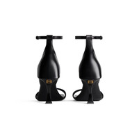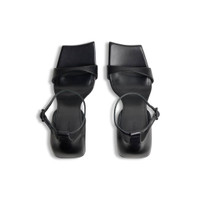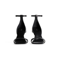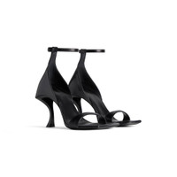 Hourglass 100mm Sandal in black soft calfskin PRODUCT DETAILS • Soft calfskin • Sandal • Curvilinear toe • Adjustable ankle strap • 100mm arch • Curved heel with aged-gold B logo inlaid at back • Embossed Balenciaga logo on sole part • Black heel and sole • Made in Italy • Wipe with a soft cloth Material: 100% calfskin